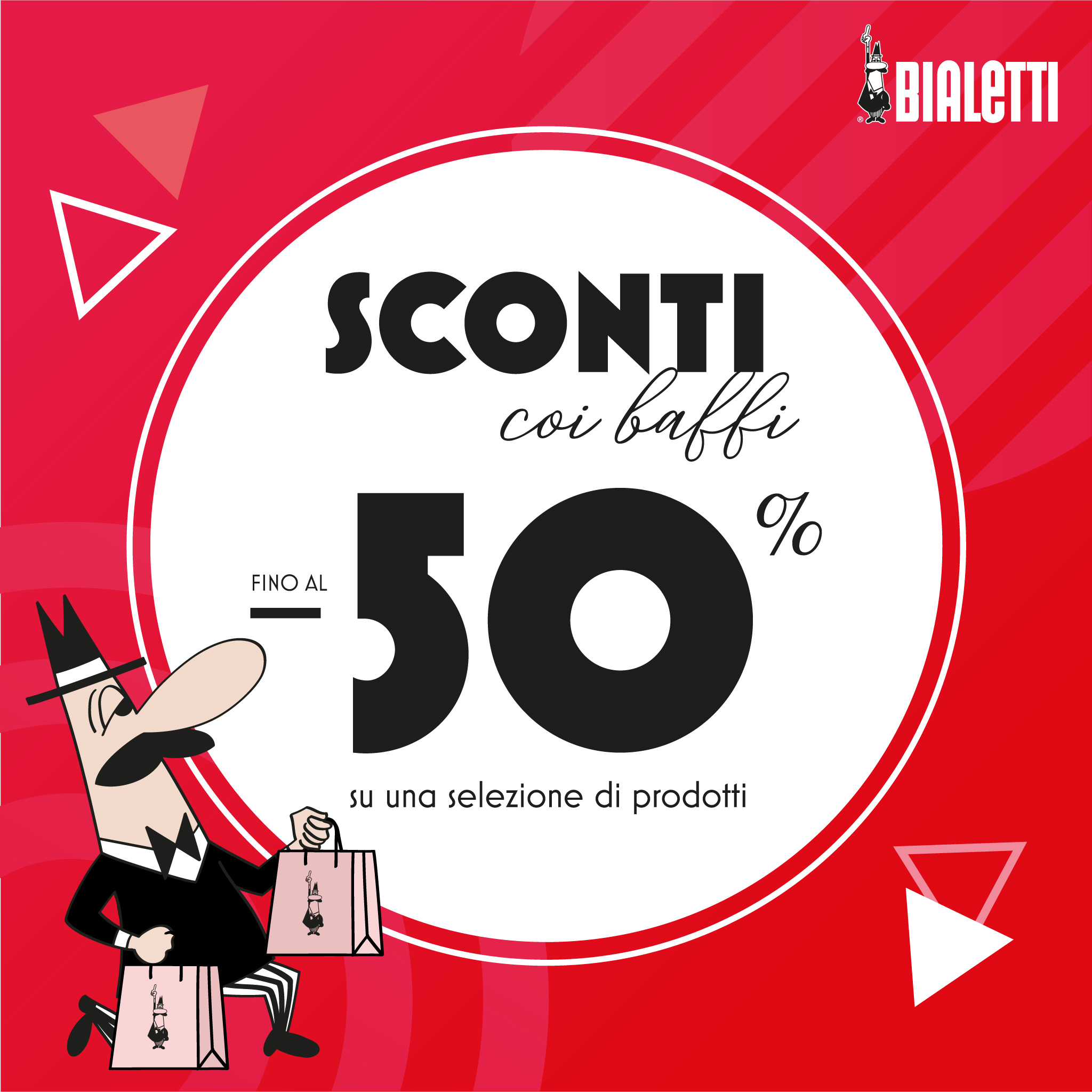 Da Bialetti sono iniziati gli sconti con i baffi vieni a degustare un eccellente caffè e approfitta dei super sconti. Casa è dove Bialetti fa il caffè.