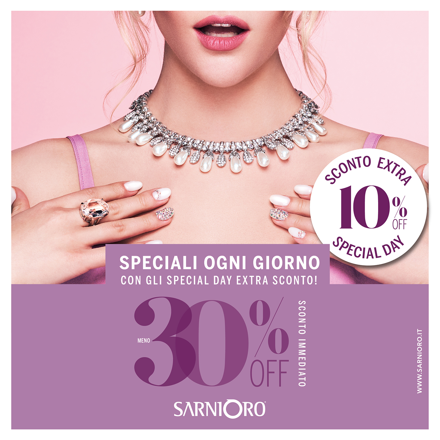 A Settembre tornano gli SPECIAL DAY EXTRA SCONTO! Vieni a trovarci nelle gioiellerie #SarniOro per approfittare delle promozioni su gioielli ed orologi dei migliori marchi! ✨