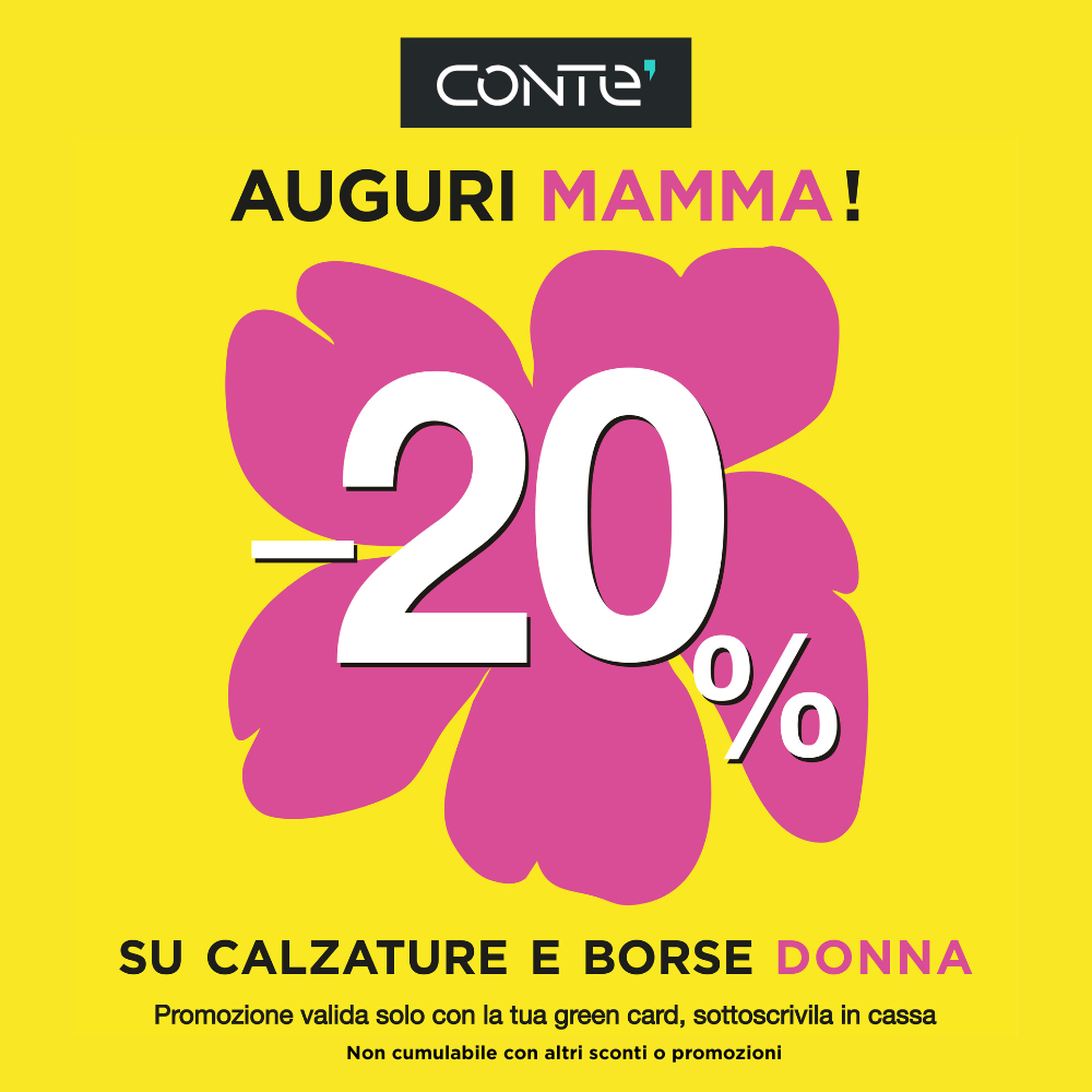 AUGURI A TUTTE LE MAMME! Da venerdì 9/5 a domenica 11/5 festeggia la mamma con una special promo: 20% di sconto su calzature e borse da donna, solo con la tua Green Card! 👠👜 Approfittante subito!